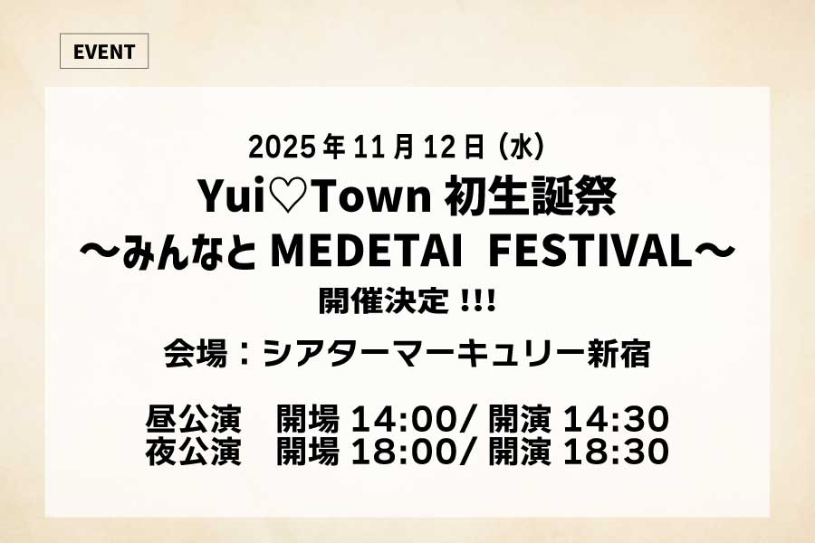 《Yui♡Town初生誕祭〜みんなとMEDETAI FESTIVAL〜》開催決定🎉